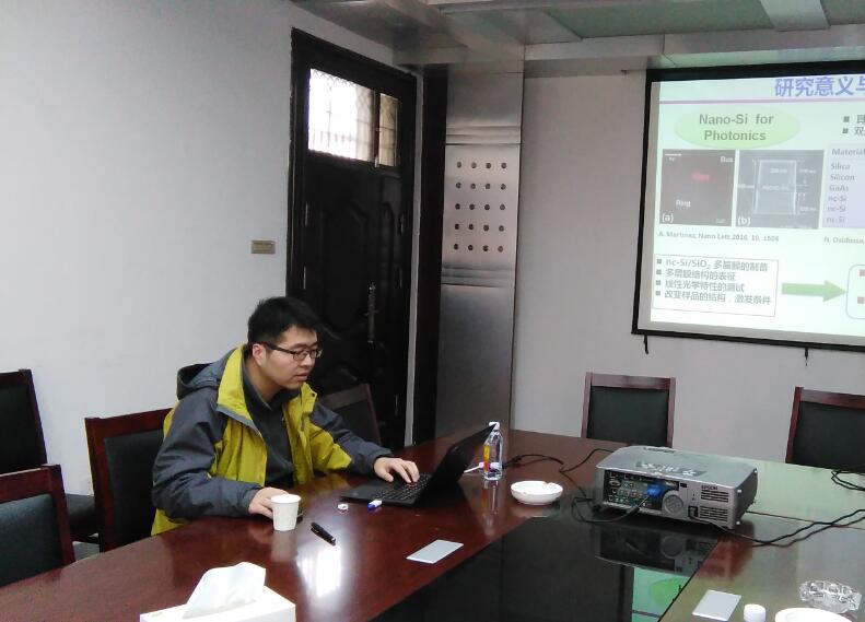 张培博士进行了题为“硅基光电材料”的报告。张博士从硅元素出发,介绍了硅基光电材料的相关概念,阐述了光电材料的目前的研究现状,研究方法和思路,并演示了硅基光电材料的巨大工业应用前景。