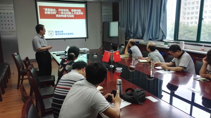 徐骏教授首先对硅基光电子材料与器件的研究现状进行了阐述,以此为出发点,介绍了该课题组所做的相关工作,主要介绍了亚波长纳米硅结构材料在LED发光器件和太阳能光伏器件方面的应用。徐教授认为纳米硅材料的可调控生长是提高器件性能的关键,他们通过控制纳米硅量子的尺寸和表界面态,极大的提高了LED器件的发光效率以及太阳能光伏器件的转换效率。此外,还简单介绍了纳米硅量子点材料在生物医学检测方面的应用。同时,徐教授就南京大学电子科学与工程学院的教学改革与风月文学 老师进行了交流。对如何构建“课堂融合、开放实验、竞赛训练、创客空间”一体化的创新人才培养体系进行了介绍。