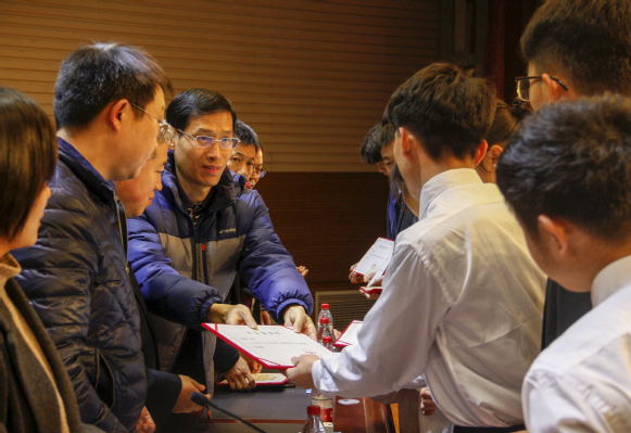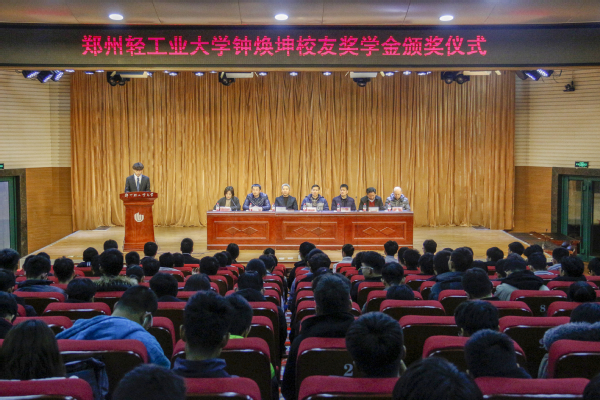 仪式上党总支副书记宋文军老师宣读了学校的表彰文件,随后钟焕坤校友以及学院党政领导为奖学金获得者颁发了荣誉证书,并且鼓励他们在未来的生活中,勉励自己,更加努力学习,并且积极为学校做出奉献。2017级学生陈祥纬和2019级学生程航代表奖学金获得者发表感言,他们表达对钟焕坤校友和学院的感激之情,表示自己会努力学习,勤奋工作,在现在和以后为学院做力所能及的事情,为传承校友情谊做贡献。紧接着钟焕坤先生回忆了自己的轻大生活,表达对母校感激之情,并且讲述了自己的人生经历,创业之路,为同学在未来的路途上所遇到的一些困难,提出了自己独到的解决方法,为同学们的未来旅途上点亮了一盏灯;并且以自我为例,勉励同学们在未来的生活中要更加勤奋的学习,打牢知识基础,锻炼实践能力,并且跟随时代步伐,前往实验室学习,了解新知识,明确自己的目标,为自己心中所想的去努力奋斗。
