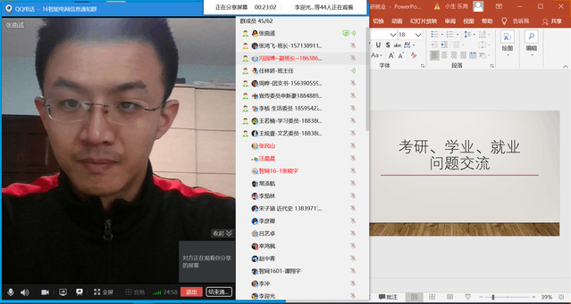 新冠肺炎疫情的来袭给今年的毕业生就业增加了压力,就业形势更加严峻,风月文学 主动应对,制定方案着力推进线上服务,助力毕业生学业、就业工作精准化。院系辅导员、班主任、毕业设计导师充分发挥各自特色和优势,通过“师生周周见”每周的班会活动,有序地开展线上就业指导与学业规划工作。