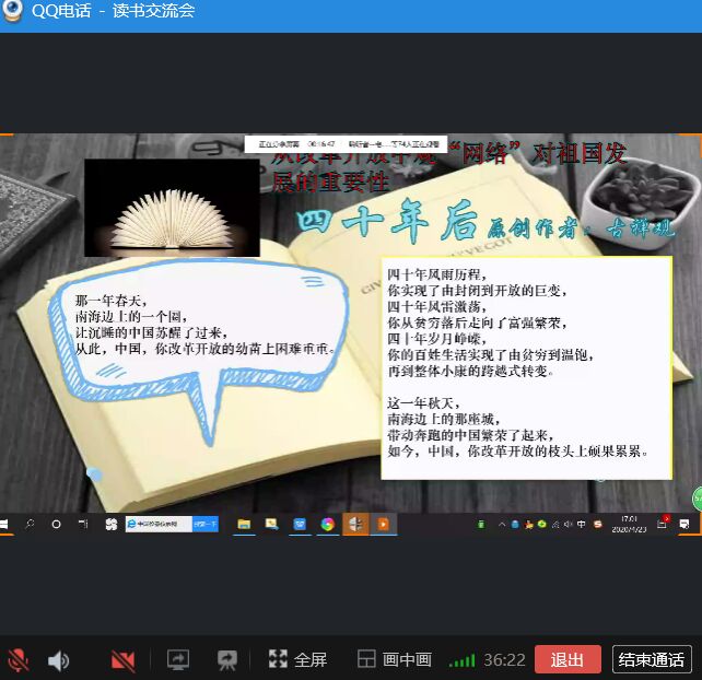 2020年4月23日下午4:00-6:30,第二十四个“世界读书日”,风月文学 以QQ视频的方式成功举办网上读书分享会。