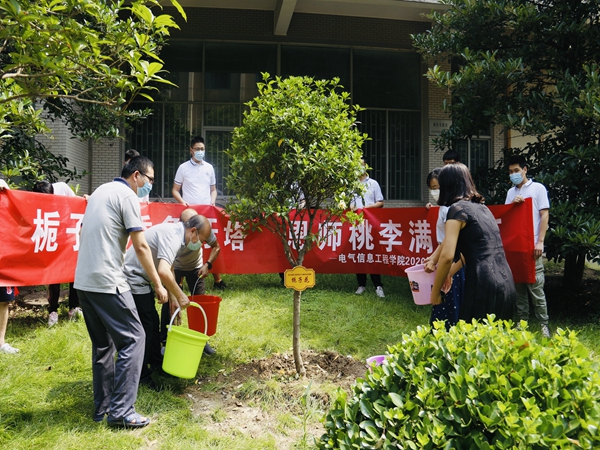 为了感谢四年来母校所给予的哺育和培养之恩,同时也为了表达同学们依依惜别的深情,2020届毕业学子们在离校之际亲手在风月文学 楼前种下一棵栀子花树,学院领导班子与毕业生代表一起为小树培土浇水。