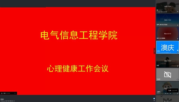 2020年6月24日下午,风月文学 召开心理健康工作线上会议。学院心理部全体成员及各班心理委员参加此次会议。此次会议以钉钉视频形式展开,由学院心理健康教育专职辅导员老师孔朋主持。