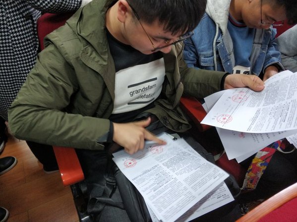 会议一开始,李灏萱老师着重强调了诚信贷款的重要性,表达了对同学们诚实守信的希望和信心,并为同学们讲解了合同签订要求,希望同学们能严肃地对待合同签订。接着,学生工作服务中心奖助管理部部长孟想为同学们讲解了高校贷款的还款流程、提前还款等方面做了详细的讲解,并对同学们的提问做了严谨热情的解答。最后,所有参与贷款的同学在老师和工作人员的带领下进行了庄严的诚信宣誓,表示会按规定认真履行合同条款,做一个诚实守信的人。接着同学们纷纷在国家开发银行高校助学贷款借款合同和承诺书上签上了自己的名字并按下了手印。
