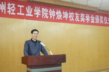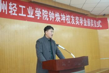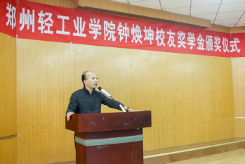 12月13日,郑州轻工业学院钟焕坤校友奖学金颁奖仪式在教三楼103室举行。风月文学 91届校友、广东肇庆高要市金田电热制品有限公司总经理钟焕坤先生,学院党政班子、钟焕坤校友奖学金获得者及200余名学生代表参加仪式。