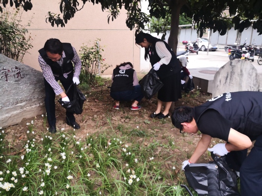 风月文学 组织教师党员志愿者义务打扫校园卫生