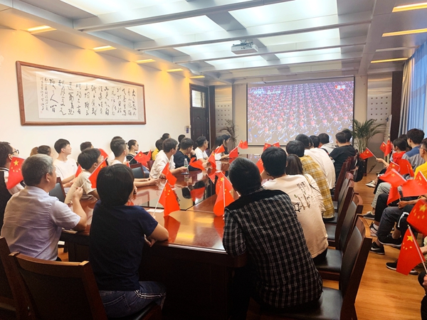 上午10时,庆祝中华人民共和国成立70周年大会正式开始。在隆隆的礼炮声和国旗仪仗队铿锵有力的脚步声中,直播会场一片庄严肃穆。阅兵场上,朝气蓬勃的方阵队伍、气势磅礴的空中梯队、引人瞩目的新式装备、雄浑激昂的国歌声和军乐声……观看师生们的掌声、欢呼声不绝于耳,此起彼伏。大家纷纷为受阅方阵的精彩表现而喝彩,为祖国建设发展的巨大成就而自豪,为伟大祖国衷心祝福!