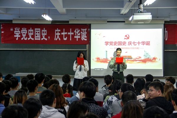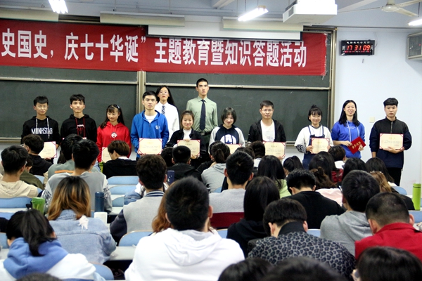 在教三楼804举办“学党史国史,庆七十华诞”主题教育暨知识答题活动。学院入党积极分子参加此次活动。