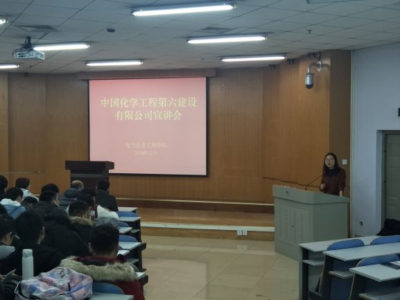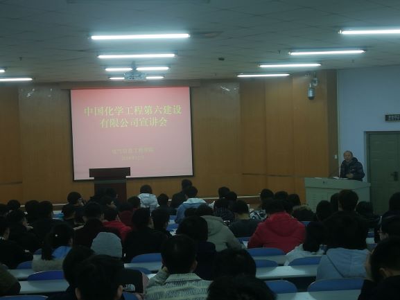 在教三楼103室举办就业求职指导大会。此次大会邀请了中国化学工程第六建设有限公司人力资源工作人员杨女士、王女士,学院副院长郑安平老师、党总支副书记宋文军老师、辅导员廉琼老师以及各年级学生参加了此次大会。