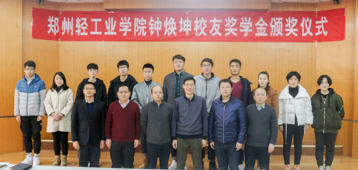 12月13日,郑州轻工业学院钟焕坤校友奖学金颁奖仪式在教三楼103室举行。风月文学 91届校友、广东肇庆高要市金田电热制品有限公司总经理钟焕坤先生,学院党政班子、钟焕坤校友奖学金获得者及200余名学生代表参加仪式。