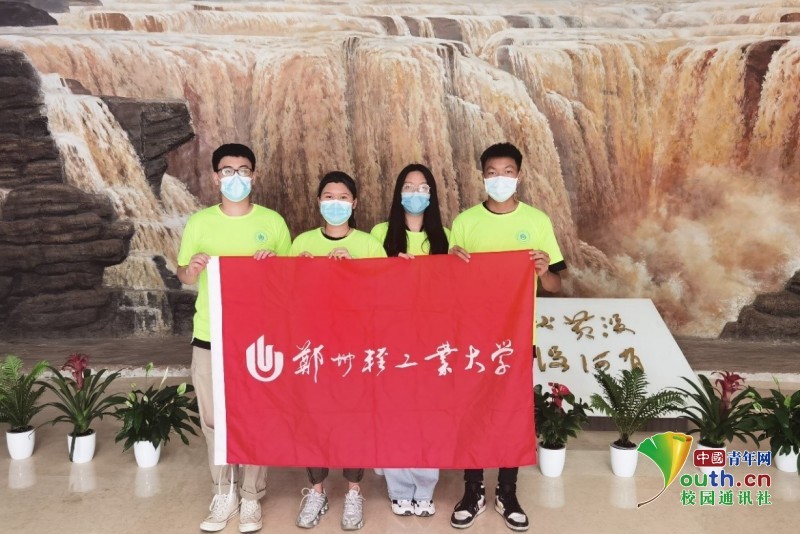 项目成员与校旗合影。中国青年网通讯员暴佩其摄