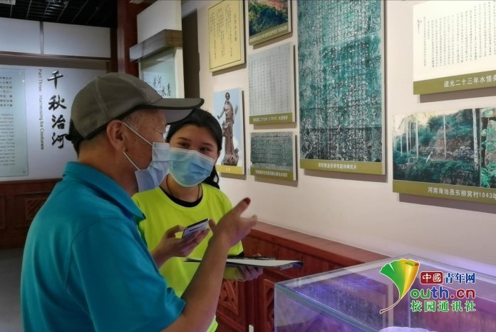 项目成员在黄河博物馆内进行保护黄河宣讲。中国青年网通讯员王佳琪摄
