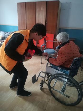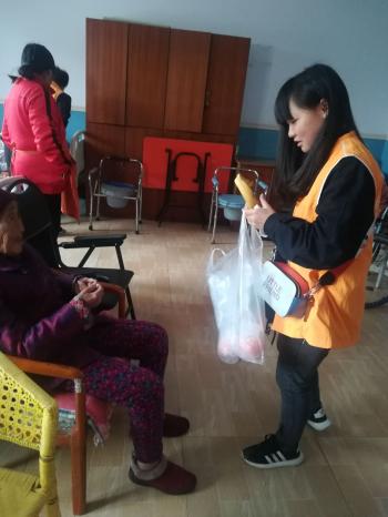 此次活动旨在向敬老院的孤寡老人献出志愿者们的热情和祝福,让他们感受到当代大学生志愿者对他们的关爱。在活动开展期间,志愿者们兵分两路:一部分为老人们清扫房间,其余志愿者则在负责人的带领下,为行动不便的老人送去了贴心慰问和为老人们带来的礼物。给老人们剥香蕉,削苹果,陪他们聊聊天。每一个志愿者都深刻体会了本次活动的主题意义——弘扬志愿精神,关爱老年群体。