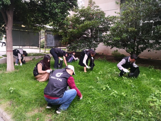 志愿活动中,大家分头行动,清除花坛垃圾、打扫卫生死角。党员志愿者们不怕脏不怕累,对草坪里的杂草进行拔出,清理地面及绿化带内垃圾。虽然很脏、很累,汗流浃背,但是大家心里感觉很高兴、很快乐。