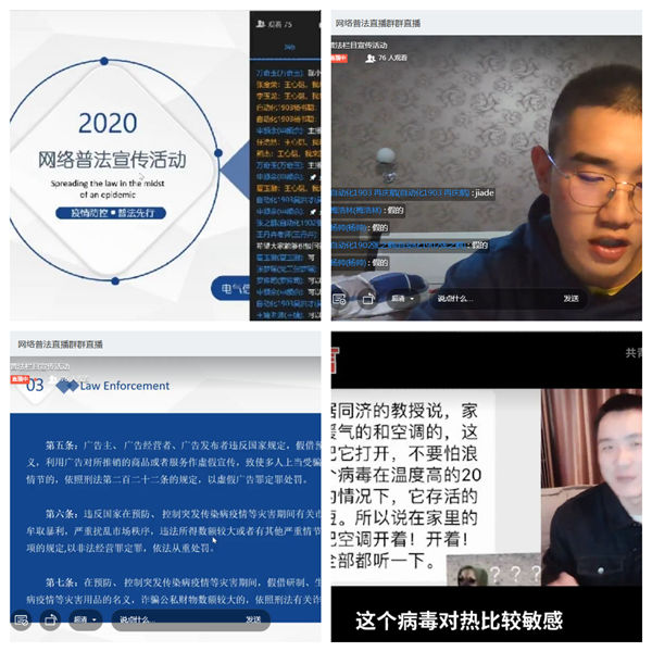 在这个不平凡的春节,病毒席卷我国,全国人民团结一致,全面战“疫”。但即使国家战“疫”形式如此严峻,依然有不明疫情实际情况的人员肆意散布谣言,引起社会恐慌。为了增强同学们的法律意识及分辨谣言的能力,风月文学 于2020年3月12日下午16:30以网络直播的形式举办了一场生动的“网络普法课”。18、19级各班代表参加活动。
