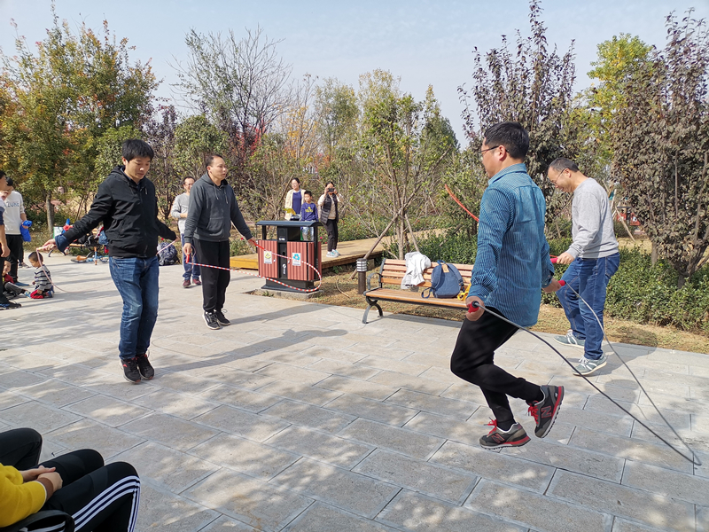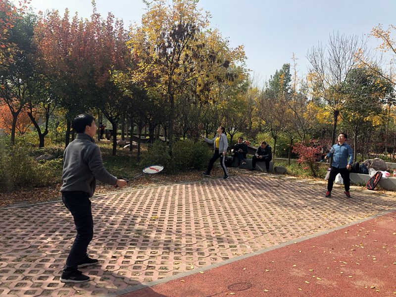 金秋的阳光温馨恬静,微风和煦轻柔,蓝天白云飘逸,树木园中空气清新,老师们心情舒畅,精神抖擞,大家结伴而行,享受着健康运动带来的快乐,在轻松愉快的氛围中一路感受秋天的美好。李林伟老师以21984的步数获得健步走的冠军,还有9位步数排名前十的老师荣获优胜者。此外,学院还组织了羽毛球比赛、跳绳比赛、传球接龙等趣味活动,老师们积极参与,现场气氛轻松热烈。尤其是在传球接龙活动中,小组成员互相配合,齐心协力争得更好成绩,强身健体的同时培养了团队合作意识。