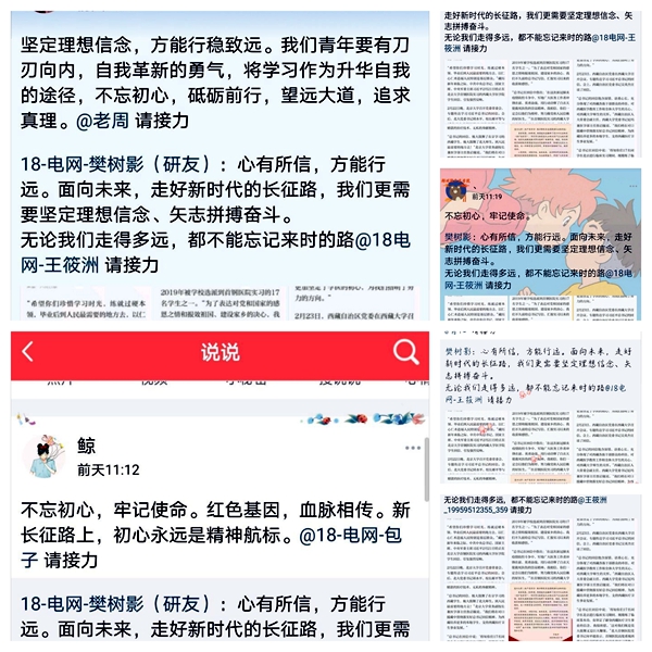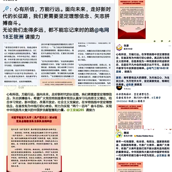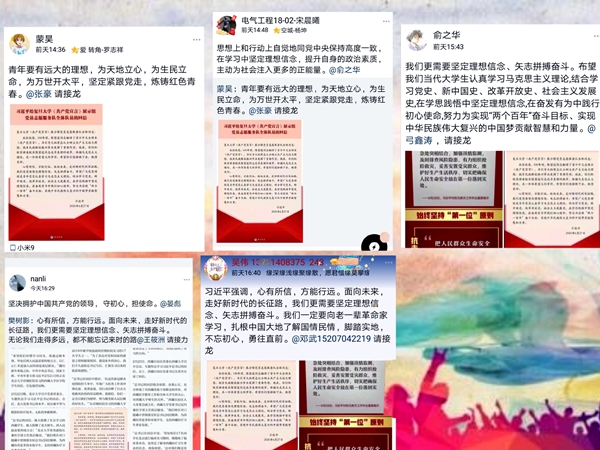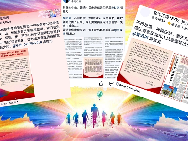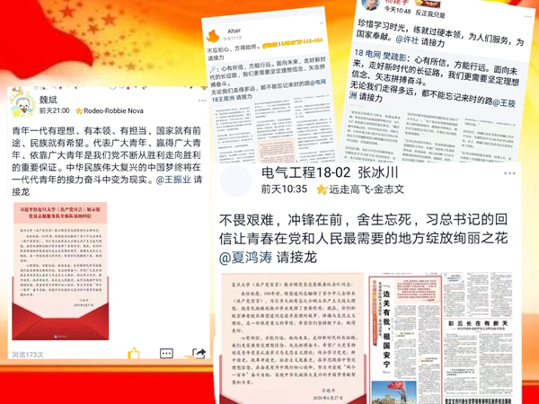 活动主要以三种形式开展。第一种是以直播的方式进行集中学习并进行小组研讨,第二种是以竞赛方式进行学习,第三种则是以空间打卡接龙的方式加深学习印象。1819级全体同学都积极参与了本次活动,认真学习了习近平总书记的回信及其讲话精神。