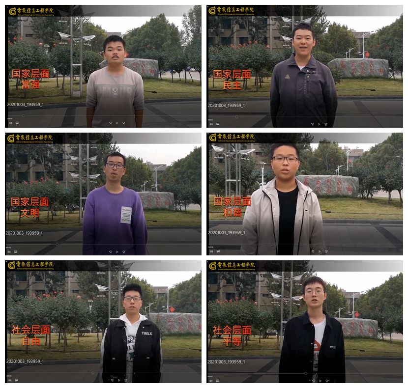 同学们纷纷表示,作为当代大学生,要追求远大理想,坚定崇高的信念。把个人的奋斗志向与国家和民族的前途和命运联系在一起,把个人今天的学习进步和祖国明天的繁荣昌盛紧紧联系在一起,使理想之花结出丰硕的成长成才之果。践行社会主义核心价值体系的过程,是一个人加强修养、完善自我的过程。要从自我做起,从现在做起,自觉担负起时代赋予的崇高使命。