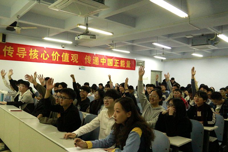 活动开始前,学院在官微以及媒体平台上对各年级各班进行广泛宣传,同学们踊跃报名参加。活动中,由主持人同学们宣讲社会主义核心价值观的内涵、产生原因、发展过程以及基本内容,介绍了社会主义核心价值观的基本原则和践行路径,随后播放了近日以来学院各班同学参与、制作的关于践行社会主义核心价值观团日活动微视频。视频中接受采访的同学们都从自己的个人认识中讲述了自己对于社会主义核心价值观的理解。最后是知识竞赛环节,同学们热情高涨,积极作答,对于中国的发展历史和社会主义核心价值观的发展历程有了更加深刻的了解。
