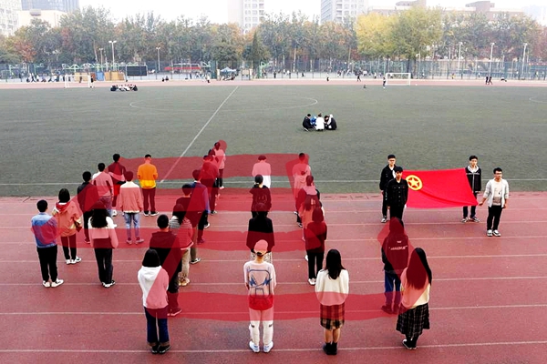 首先,学院学生干部姜郝梦尧带领大家学习全国青联十三届全委会全国学联二十七大会议精神。倡议广大青年和青年学生脚踏实地、奋进新时代,为党和国家事业发展作出新的更大的贡献。接着,由杨雯同学带领同学们观看《厉害了,我的国》纪录片,令各位同学更加深刻的认识到中国近代来的飞速发展,增强了同学们的国家自豪感。在纪录片观看结束后,由杨雯同学带领全场人员重温入团誓词,以表达同学们不忘初心,牢记使命,脚踏实地奋进新时代的决心。活动最后,全体起立共唱团歌并且到田径场进行创意合影留念。到此,本次团课圆满结束。