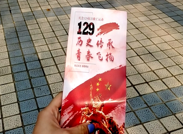 本次活动旨在使同学们深入学习贯彻习近平总书记关于党史、新中国史、改革开放史、社会主义发展史及新冠肺炎疫情防控工作的重要讲话和指示精神,向同学们传递一二·九爱国精神,传承先辈们勇于担当、无私奉献的精神,展现当代大学生积极向上、与祖国发展事业共奋进的责任与担当。活动中,工作人员向前来参加活动的同学们分发一二·九宣传页,结合“四史”为同学们讲解一二·九的历史背景、运动过程、主要影响等,并引导同学们到一二·九优秀征文展的展板前欣赏优秀征文,通过这些优秀征文,同学们对一二·九精神有了更深刻的理解和认识。
