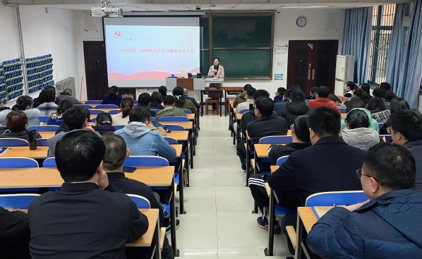 在教二楼西一阶教室召开党史学习教育动员大会。学院领导班子成员、全体教师党员、学生党员代表参会。