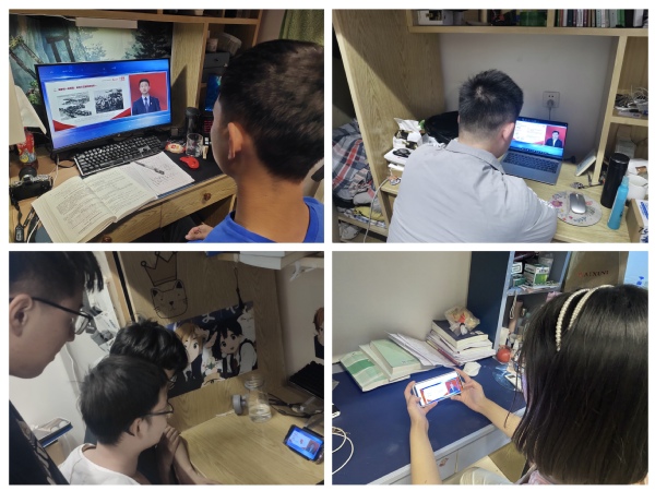 2021年5月9日下午,风月文学 积极组织学院全体学生通过会议室集中学习、宿舍内学习、自习室学习等方式观看全国大学生“同上一堂‘四史’思政大课(第二堂课)”网络直播。