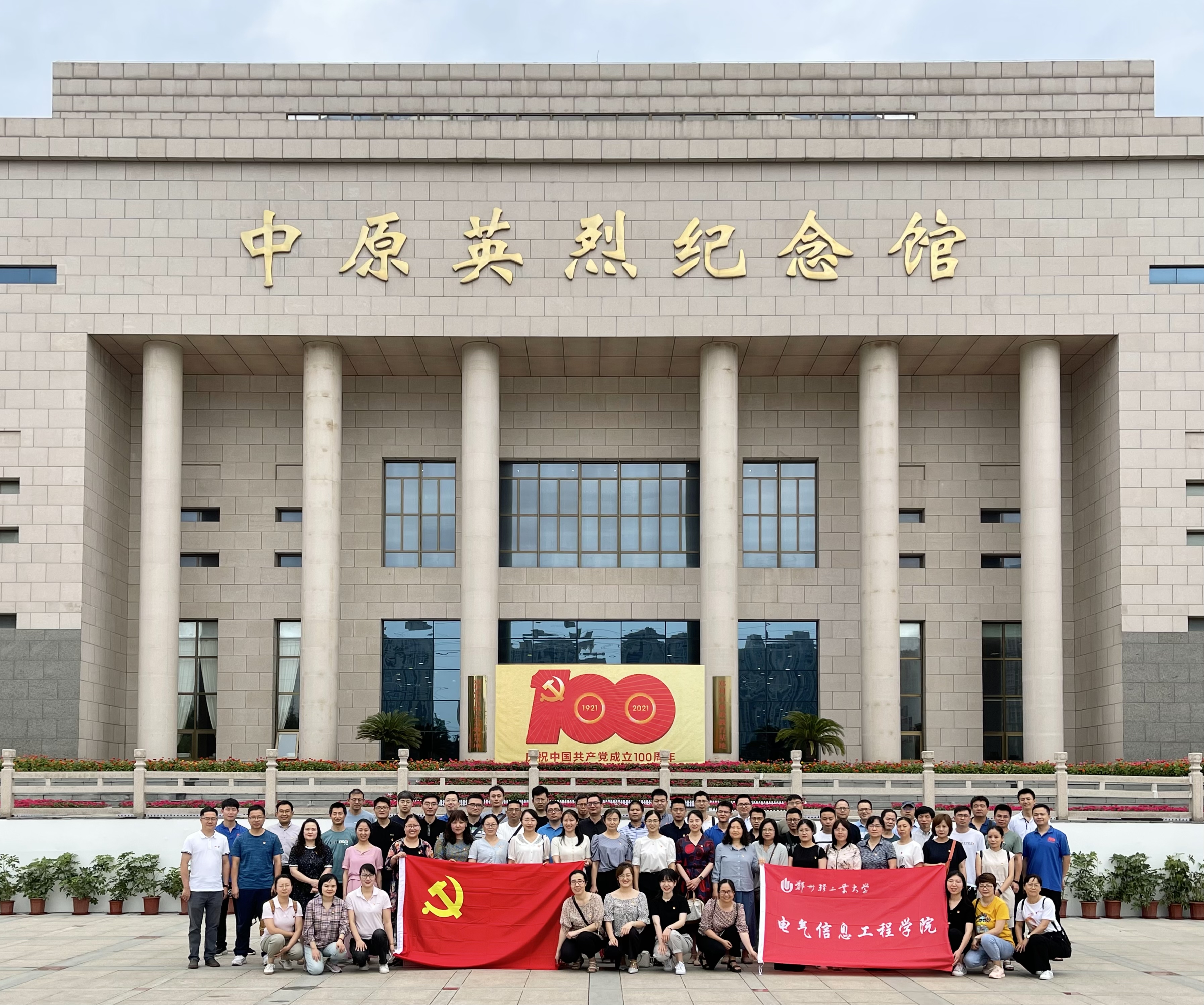 在中原英烈纪念馆大厅内,党委书记张辉带领学院教师党员面向鲜红的中国共产党旗重温入党誓词。党员们铿锵有力的宣誓声响彻大厅。