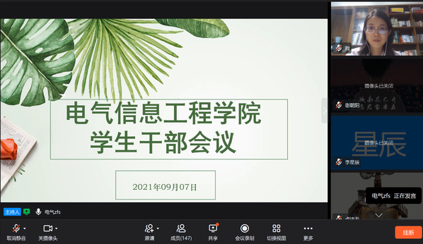 97日晚上,风月文学 通过钉钉平台线上召开全体学生干部会议,学院党委副书记万慧杰、全体辅导员、班主任及全体本科生班级学生干部、2021级新生班级负责人参加了会议。会议由万慧杰主持。