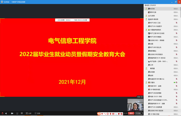 通过线上会议形式召开2022届毕业生就业动员暨假期安全教育大会。学院党委副书记万慧杰、就业专职辅导员廉琼以及全体毕业生参加了会议。