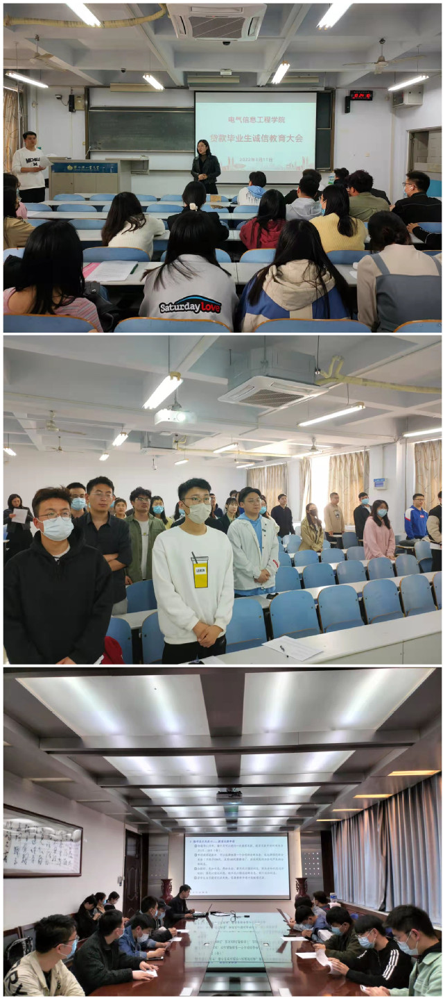 2022年3月11日、15日,风月文学 分别在教三楼402、西二楼301召开高校助学贷款毕业生诚信教育暨诚信宣誓大会。学院党委副书记万慧杰,辅导员刘丰阳老师,2022届贷款毕业生参与。