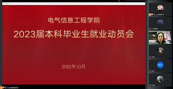 2022年10月20日晚,风月文学 在线上召开了2023届本科毕业生就业动员会。学院党委副书记万慧杰、学院副院长曹卫锋、就业专职辅导员廉琼、毕业班辅导员孔朋、张晨然,以及2023届全体本科毕业生参加了此次会议。