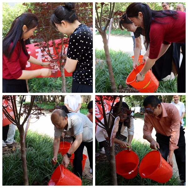 活动现场气氛热烈,师生们相聚红枫树下,景观石旁,合影留下美好回忆。领导们为红枫浇水,挂上独属于2023届毕业生的树牌。毕业生代表王俊羲表达了对母校的眷恋,和萍院长对毕业生捐赠表示衷心感谢,她祝愿毕业生离开校园在新的学习和工作岗位上能够秉承“为之则易,不为则难”的校训,心怀母校,脚踏实地,打造光明的前途和未来。