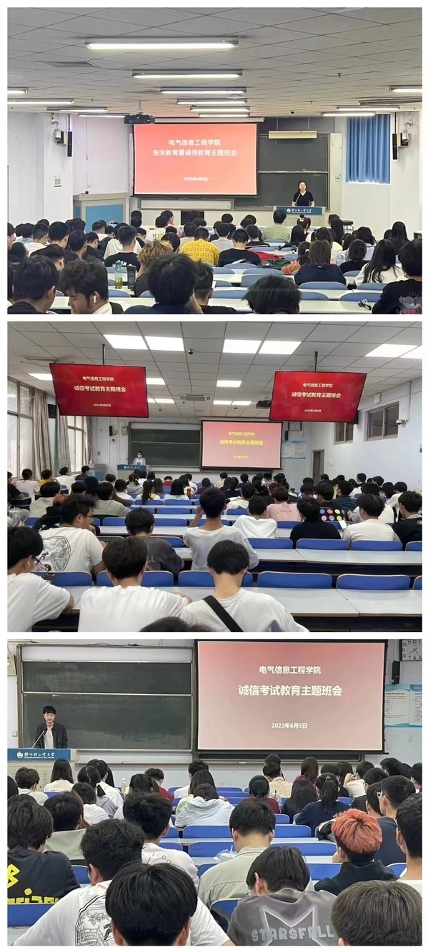 为强化学安全意识,严肃考风考纪,6月5日--6月6日,电气信息工程学院以班级为单位召开学生安全教育暨诚信考试教育主题班会。