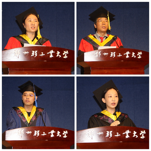 江泳老师作为教师代表发言。他勉励同学们,一要追求幸福,守住底线,要能明辨是非并抵挡住各种诱惑和错误价值导向,做真实的自己;二要脚踏实地,终身学习,要有严谨务实的工作作风,干一行爱一行;三要开拓进取,勇于创新,让理想信念在创业奋斗中升华,让青春在创新创造中闪光。
