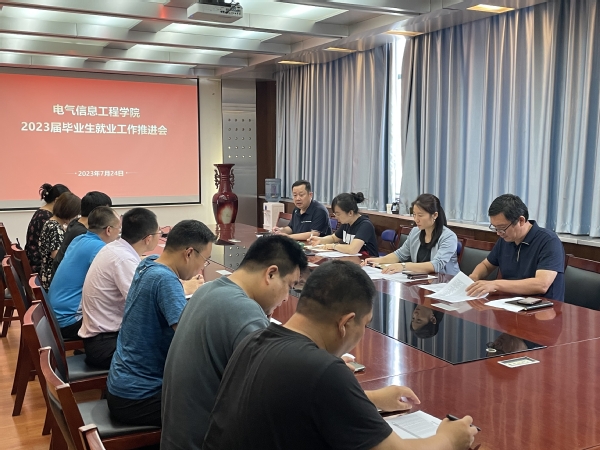 7月24日下午,电气信息工程学院2023届毕业生就业工作推进会在西二楼301室召开。学院领导班子、各系主任、毕业班辅导员、就业工作专职人员参加会议。会议由刘振卫副书记主持。