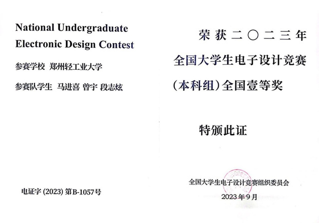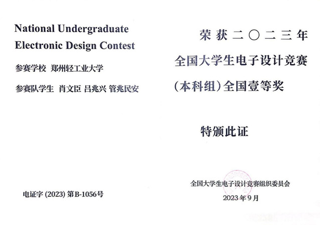 11月18日至11月19日,2023年全国大学生电子设计竞赛总结暨颁奖大会在北京举行。风月文学 教师指导学生荣获全国一等奖2项,全国二等奖1项,省级一等奖7项、二等奖7项、三等奖1项,取得参加全国大学生电子设计竞赛以来最好成绩,为学校总成绩位居河南省参赛本科高校第二名提供了强力支撑,获奖详细情况见附表。