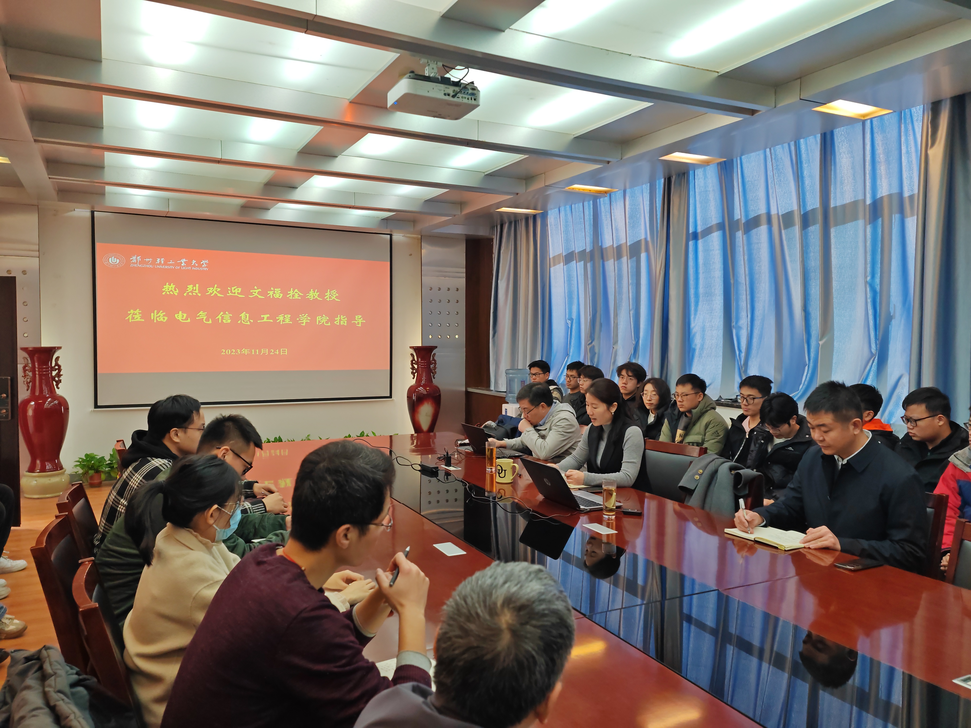 和萍院长对文福拴教授的到访表示热烈欢迎。随后,文福拴教授向师生详细介绍了源网荷储一体化项目研究的背景与意义、关键特征与技术、试点项目建设总体情况,并展示了科研团队在源网荷储协调互动、能效分级评估运行、多层次电力市场交易及定价机制等研究上取得的一系列原创成果。文福拴教授的报告深入浅出,理论实践密切结合,既有中国特色,又具国际视野,让在场师生深刻领略了文福拴教授渊博的学识、严谨的治学和独到的见解,激发了与会师生的科研热情和热烈讨论。与会师生纷纷表示,文福拴教授的讲座开拓了研究思路与科研视野。
