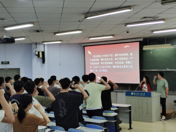 会上,崔昊老师细致讲解了毕业生党员党组织关系转递办理流程,详细说明档案派遣过程中容易出错的地方,提醒毕业生党员认真填写、积极配合,确保毕业生党组织关系转接工作顺利完成。刘丰阳老师对全体毕业生党员进行了党纪学习教育,领学了《中国共产党纪律处分条例》,通过引用党章党规、解读典型案例等方式,向毕业生党员们深入阐述了党纪要求和行为规范,勉励大家要坚定理想信念,不断提高自身素质和能力,以实际行动践行党员的初心和使命。最后,崔昊老师带领全体毕业生党员重温入党誓词,重拾初心使命,勉励大家要在思想上、行动上始终保持党员的先进性和纯洁性。