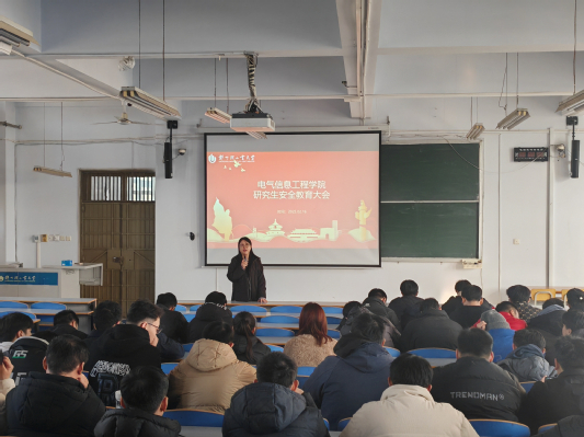 会上,刘振卫副书记通报了2025届硕士研究生的就业情况,深入分析了当前国内就业整体形势,并结合往届毕业生就业工作特点,重点讲解了就业信息获取、面试技巧和就业安全等内容。刘书记勉励同学们要调整心态,树立正确的职业观、就业观和择业观,坚定信心积极就业;要找准定位,做好简历优化、求职面试的充分准备,打好就业主动仗;要开阔眼界,勇于挑战、敢于拼搏,寻找人生的更多可能性。面向23级研究生,刘书记鼓励大家要及早树立就业目标,积极参与科研创新、实习实训和技能竞赛等活动,持续提升专业能力,以实战磨砺自我,增强就业竞争力。研究生管理办公室副主任芦佳老师分别从交通安全、消防安全、财产安全、心理健康、人身安全等方面进行了安全教育。