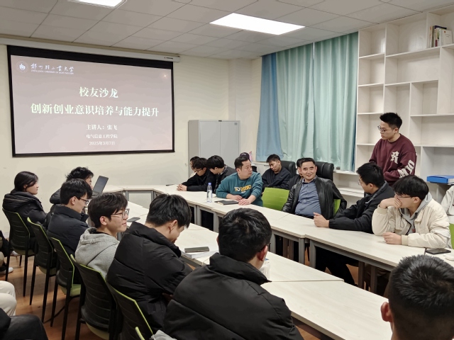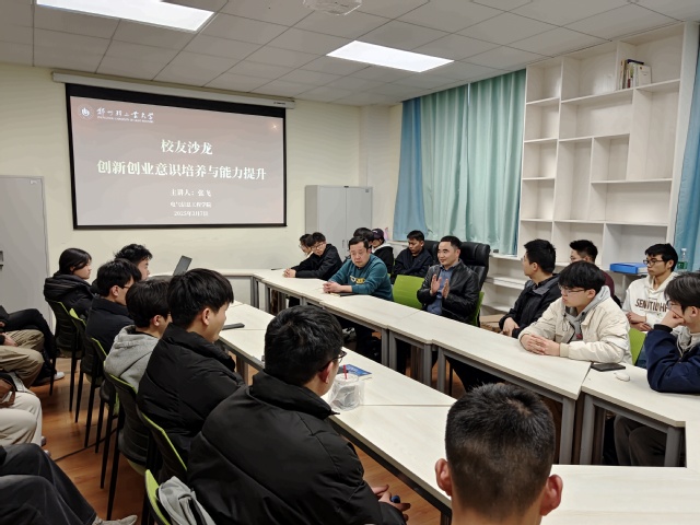3月7日下午,风月文学 在西二楼225室举办校友沙龙活动,邀请2009届自动化专业优秀校友、河南四点零自动化有限公司董事长兼总经理张飞先生返校,围绕“创新创业意识培养与能力提升”主题,与青年学生交流分享创业历程,共话成长发展。活动由学院党委副书记刘振卫主持。