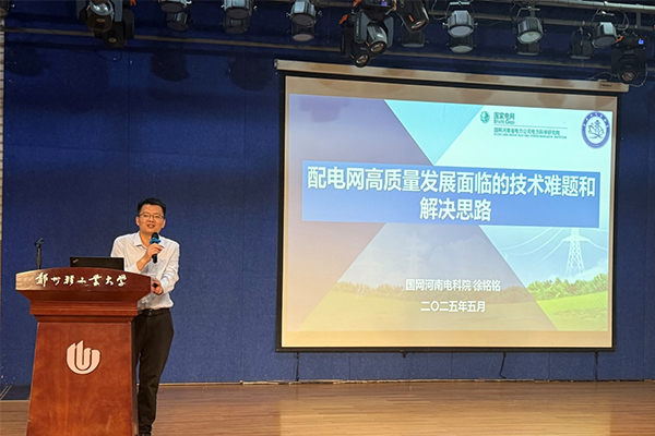 国网河南综合能源公司副总经理刘浩为师生做了“智慧能源 绿色未来——新型电力系统韧性提升路径探索”专题报告。他从“国之大者、担当之举、韧性之法”三个层面,深度诠释了国家能源安全的重要性、新型电力系统建设的必要性和源网荷储的实践意义,全面呈现了电力的科技魅力和使命担当。