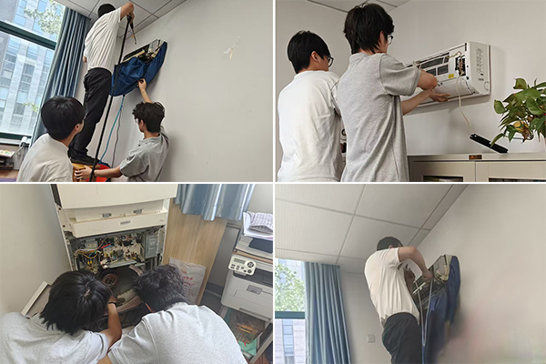 “这次活动是一堂生动的劳动教育实践课,拆解、安装、清洗,让我更加深入了解空调的结构、运行原理,对于专业学习具有很大促进作用。”参与活动的陈星宇感慨道。志愿服务队队长熊雨豪也表示:“运用专业所学、自己的劳动,帮助大家改善工作、学习环境,特别有成就感。”