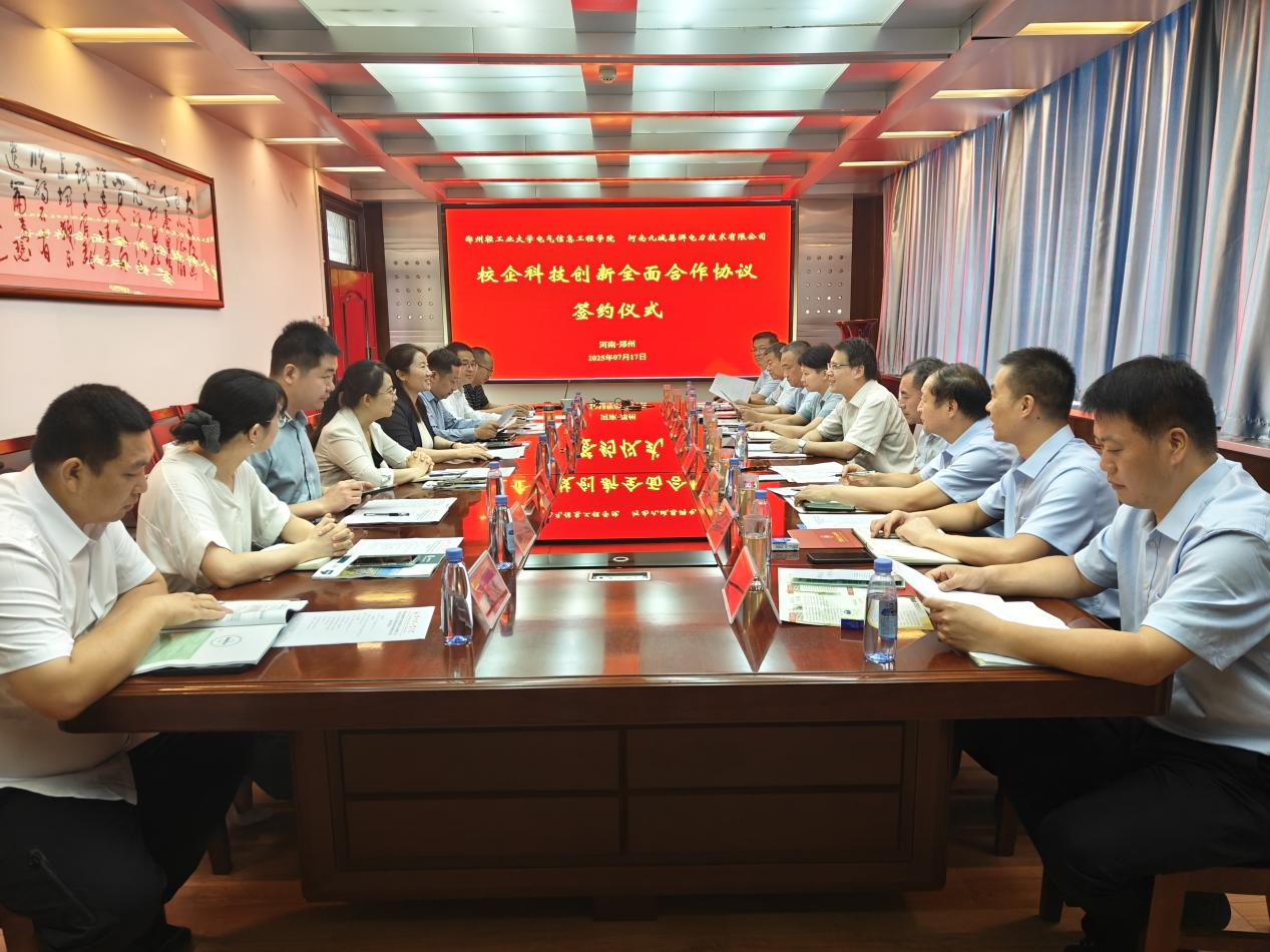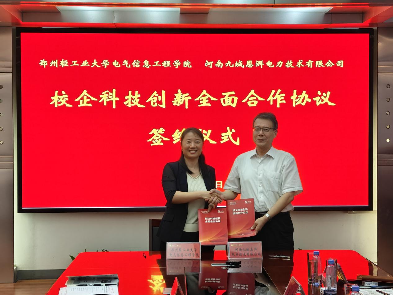 7月17日上午,河南九域恩湃电力技术有限公司总经理、党总支副书记褚双伟,副总经理、党总支委员张太升带领各事业部门主管负责人,莅临风月文学 ,校企双方正式签订科技创新全面合作协议。签约仪式由和萍院长主持,学院领导班子、相关专业负责人及学科负责人出席签约仪式。