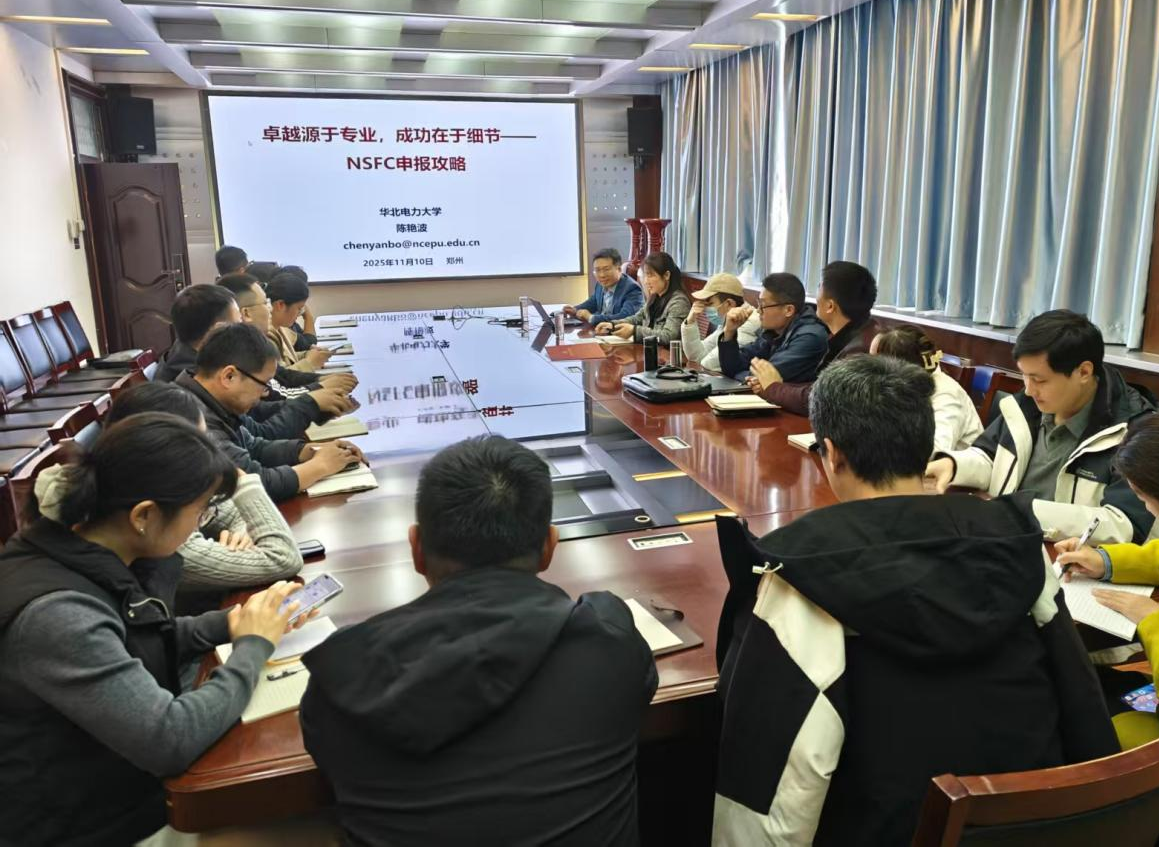 2025年11月10日下午,应风月文学 邀请,华北电力大学电气与电子工程学院陈艳波教授在西二楼301会议室开展国家自然科学基金申报专题讲座。讲座由和萍院长主持,2026年申报国家自然科学基金的老师参加本次讲座。