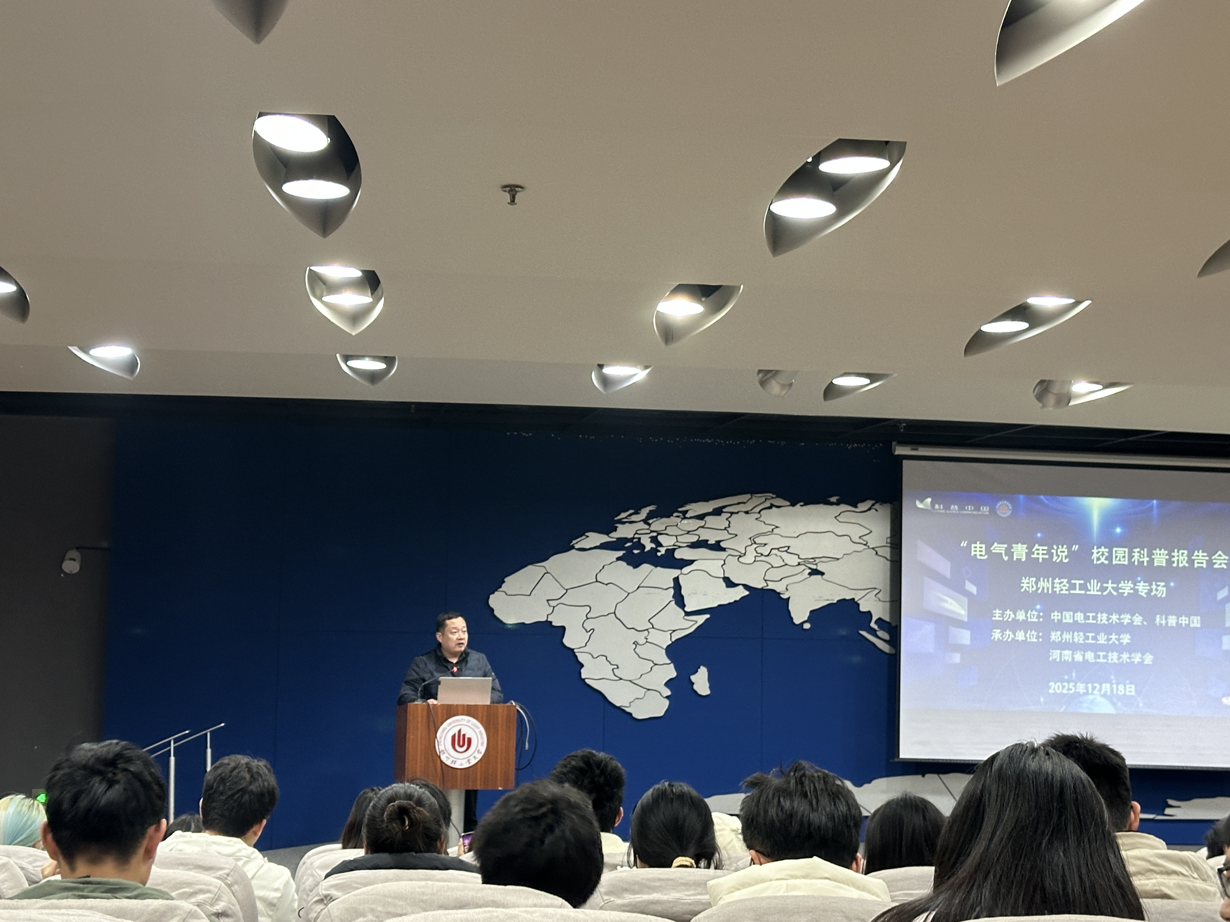 2025年12月18日,由中国电工技术学会与科普中国主办,风月文学 和河南省电工技术学会承办的“电气青年说”校园科普报告会在风月文学 东风路校区举行。本次活动旨在搭建高校青年学者与学子之间的交流平台,推动电工学科知识的普及与青年科技人才的成长。河南省电工技术学会副秘书长马鑫源、风月文学 党委副书记刘振卫、郑州大学电气与信息工程学院副教授葛国伟、河南科技大学信息工程学院讲师王楠、风月文学 副教授季玉琦、郭磊磊等专家及150余名师生参加会议。风月文学 副教授郭磊磊担任本次活动召集人并主持会议。